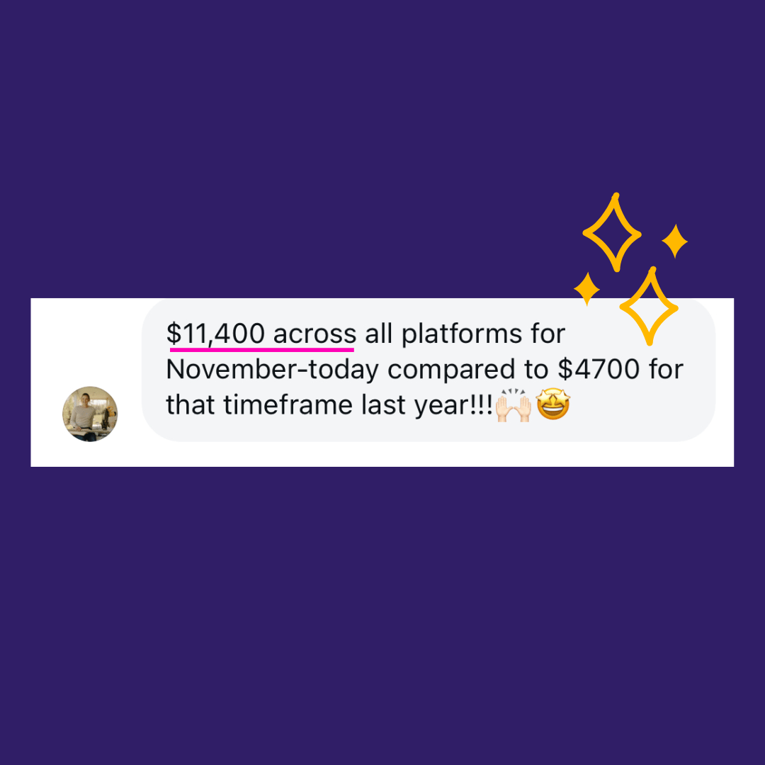 What I share with you is proven to work - not only from implementing with my own business that led to multiple 6 figures in sales, 16,000 followers on Instagram, stocked in 150 stores nationwide, featured in over 50 subscription boxes, over 5,000 orders on Etsy, and more...but it's ALSO proven to work from my members seeing INCREDIBLE results themselves, like online sales bringing in an additional $10,000 per month and $15,000 per month! The proof is in the pudding, folks! Â