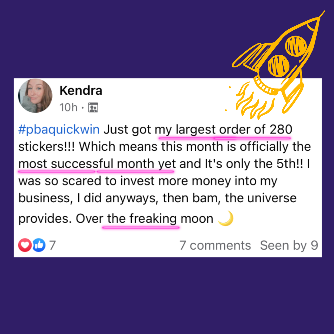 When Kendra first joined Product Biz Academy, she thought she needed to be the sticker brand for EVERYONE. After joining, she learned the importance of defining her SPECIFIC target customer; she rebranded her business and brought the new branding to her Etsy, Website and Instagram to truly CONNECT with the RIGHT customers... and got an order of 280 stickers almost instantly, making January one of her most successful months EVER.