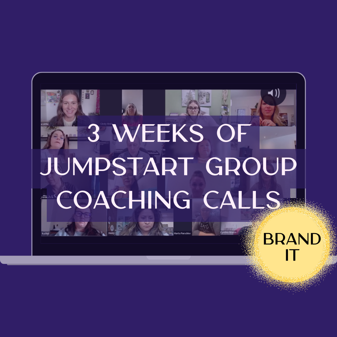 If you enroll in Brand It, you’ll receive 3 weeks of JUMPSTART Group Coaching Calls to help you prep for your rebrand, get clear on what makes your business unique, and feel confident moving forward.