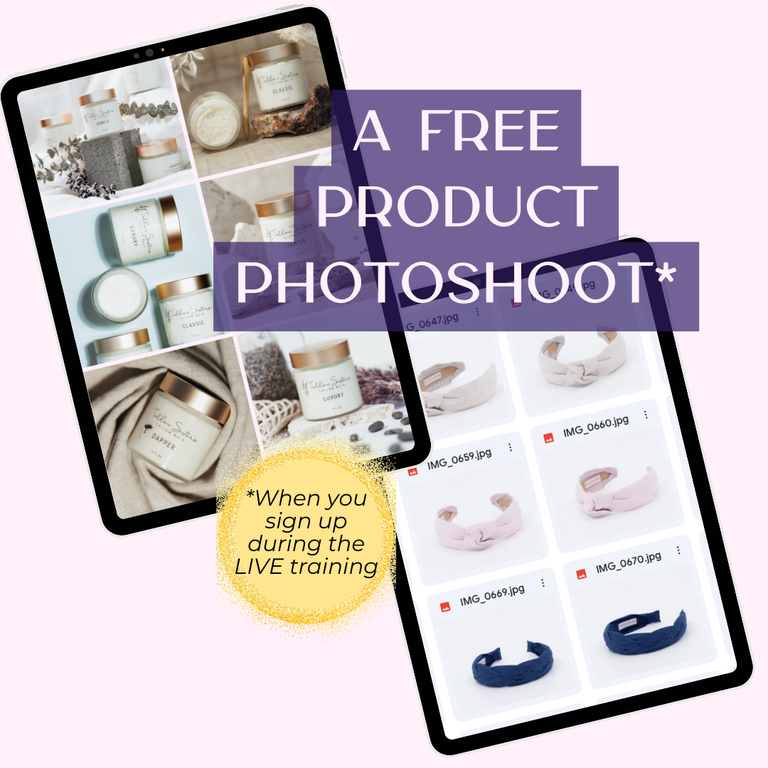 When you enroll in BRAND IT + BUILD IT during the LIVE training for the FREE bonus photoshoot, you will be connected with one of our incredible photographers to have white background photos completed for up to 20 products OR lifestyle photos completed for up to 3 products. Working with our photographers will include creating a shot list, determining the type of photos you want, and then you'll ship your products to the photographer for them to work their magic. The end deliverables you will receive are professional photos so you can stand out with your products on all e-commerce platforms with top notch, professional photography.Â